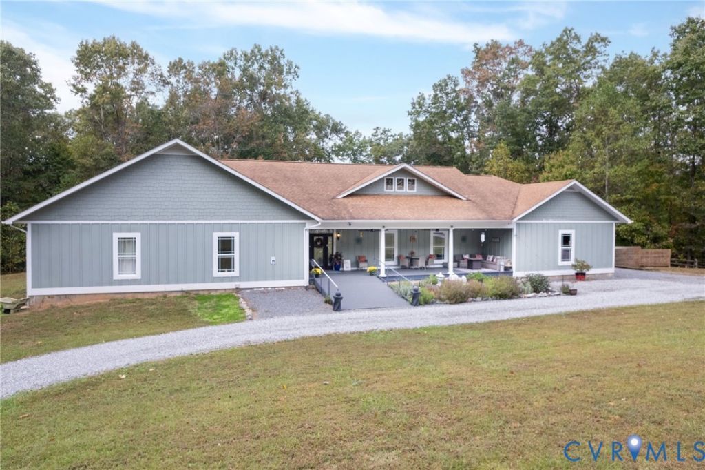 Nestled on 22 secluded acres, this stunning 4-bedroom, 2.5-bath ranch home offers a private, retreat-like setting surrounded by nature. A long, wooded driveway leads you to the home's large and inviting front porch-a perfect place to relax and take in the serene views. Inside, the move-in ready, open-concept design welcomes you with bright living and dining areas where four sliding glass doors open to an expansive deck, seamlessly blending indoor and outdoor living. The eat-in kitchen is ideal for both everyday living and entertaining, featuring granite countertops, stainless steel appliances, and a peninsula with bar seating. Just off the kitchen, a spacious bedroom offers versatility as an office, den, or private multi-generational bedroom. One wing of the home hosts a luxurious primary suite with private deck access and a spa-like bathroom complete with a double vanity; large, tiled shower; and soaking tub. Two additional bedrooms, a full hall bath, an office, and a convenient laundry room complete this side of the home. Step outside to the fenced backyard and you'll find an oversized Trex deck-perfect for lounging, dining, or entertaining-along with a patio area featuring a fire pit, 6-person hot tub, outdoor shower, and plenty of room to add a pool. A detached 3-bay garage provides exceptional storage or workshop space, with endless possibilities for future use. A creek runs along the back line of the property! Peaceful, private, and beautifully maintained, this property offers the perfect blend of comfort, functionality, and natural beauty-just waiting for you to call it home. HIGHLIGHTS include: Zoned A-2; ADA compliant; new Culligan water filtration system; neutral LVP & carpeting; geothermal heating & cooling; 6-car garages; alarm system; Firefly high speed internet; roofed barn & chicken coop; and much more!