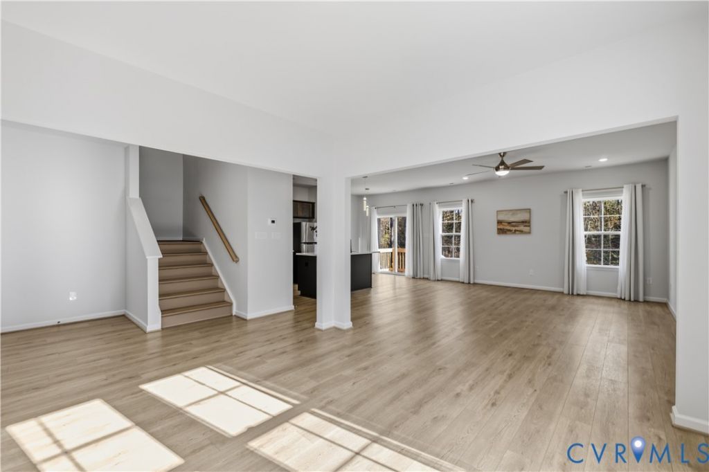 Welcome to a rare opportunity to own a nearly new, barely lived-in home with all upgrades already complete. Enjoy the benefits of new construction without the time, cost, or hassle of finishing touches. This truly move-in-ready, two-story home offers 3 bedrooms, 2.5 bathrooms, and walk-in closets in every bedroom. The main level features a spacious family room and a versatile dining or flex space, perfect for a playroom or home office. The kitchen showcases upgraded cabinetry, quartz countertops, stylish pendant lighting, and an eat-in area that opens to a fabulous wooded homesite with walking trail. Luxury vinyl plank flooring flows throughout the home, complemented by custom window treatments and ceiling fans in every bedroom. Upstairs, hardwood steps lead to an open loft connecting the secondary bedrooms and full bath. The primary suite boasts a massive walk-in closet and an upgraded en-suite bath featuring a new countertop slab, tiled shower, and abundant storage. The garage adds convenience with a painted finish. This exceptional home offers the best of both worlds, a barely lived-in with all the must-have upgrades already in place.