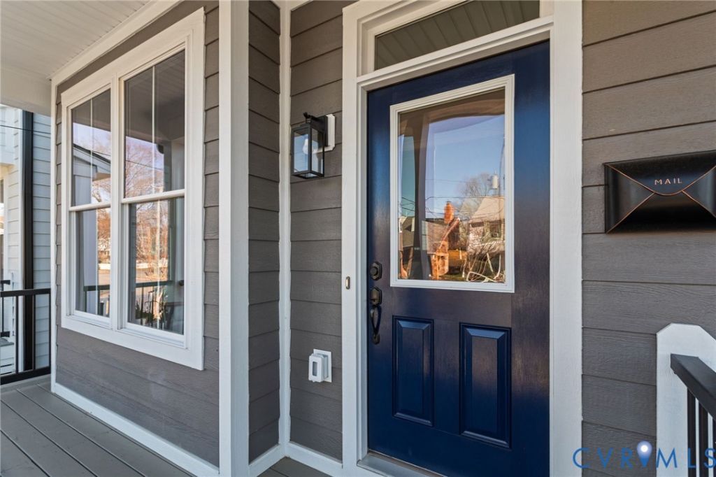 Welcome to 909 ½ N 36th St, one of Church Hill's standout new construction homes. Positioned along a nearly complete row of thoughtfully built homes, this one pairs classic curb appeal with modern livability. The wide front porch, topped with a standing-seam metal roof, offers an immediate hint at the level of craftsmanship carried throughout. Inside, the main level offers hardwood floors, 10' ceilings, recessed lighting, a fireplace, and a custom trim package. Sunlight fills the living room, which flows into the dining area and an exceptional kitchen designed for everyday use and entertaining alike. Highlights include an 8-foot waterfall island with seating and pendant lighting, soft-close cabinetry with dovetail drawers, in-cabinet lighting, Quartz countertops, a tile backsplash, high-end SS appliances, a spacious pantry, and a dedicated bar area. A flexible first-floor bedroom or office sits at the rear of the home and is paired with a full bath featuring a walk-in shower with a tiled surround and designer finishes. The one-car garage, equipped with a 100-amp electrical panel, adds valuable convenience. Upstairs, hardwood floors continue throughout three generously sized bedrooms. Two rear bedrooms offer ample closet space, recessed lighting, and ceiling fans, and share a stylish Jack-and-Jill bath with a beautiful vanity, tiled floors, and a tub/shower combo with tile surround. At the front of the home, the primary suite is amazing, showcasing custom trim, a vaulted 10' ceiling, a cozy fireplace, and three closets, including a large walk-in. The ensuite bath completes the space with a glass walk-in shower, designer tile, and a dual vanity. Outside, enjoy a polished landscaping package with a fully sodded yard, front picket fencing, rear privacy fencing, and dusk-to-dawn lighting. Just a short stroll to Chimborazo Park, Peaberry Coffee House, Grisette, and many of Church Hill's favorite restaurants and parks, this home delivers quality craftsmanship, thoughtful design, and an exceptional location.